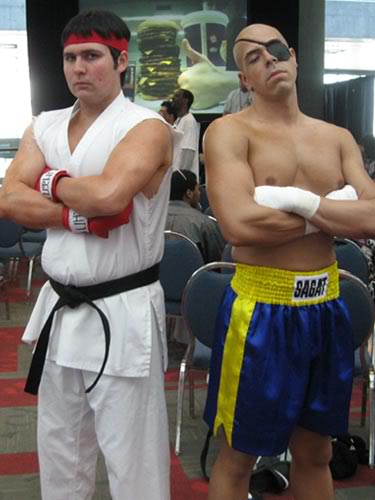 Andrew had to go to work, so Anthony and I stayed behind to watch a special Street Fighter 4 event for charity. Six people won auctions for the chance to do battle with Reuben Langdon, the voice actor who potrayed Ken Masters. If they won, Reuben would record a personalized voice message for their phone and they would also receive a signed lithograph of Ken. Five of the winners defeated Reuben's Ken. The sole loser, who used Ryu, lost a very close match. No offense to Mr. Langdon, but I think I had a pretty good chance of winning some prizes if I had paid up the money.