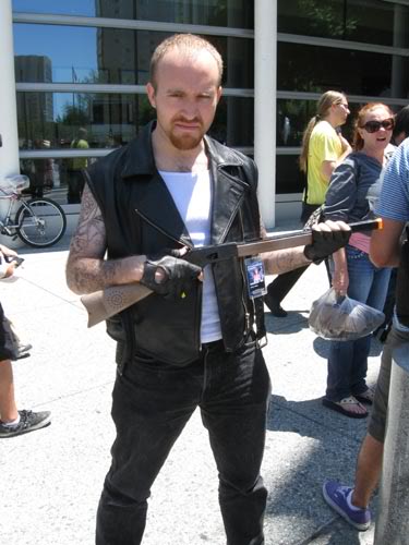 We walked upstairs right on time to witness part of the Rock Band 2 tournament. A band dressed up like the main crew from Left 4 Dead was on stage. They played Blue Oyster Cult's Don't Fear the Reaper. I have no idea who won since we didn't stick around for the conclusive round due to an autograph session.