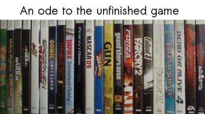 Editor's note: I know where Lee's coming from -- I can spot four games on my permanently unfinished list in the picture below, and I'm OK with that. -Demian