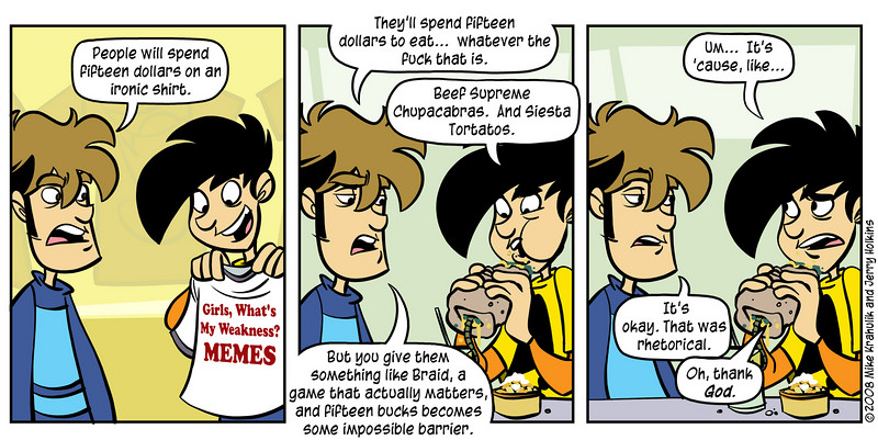 One of the main things I remember about Braid is the controversy over its price when it was released. ”Fifteen dollars for an Arcade game!?” the Internet cried. “That’s outrageous!!!!!”