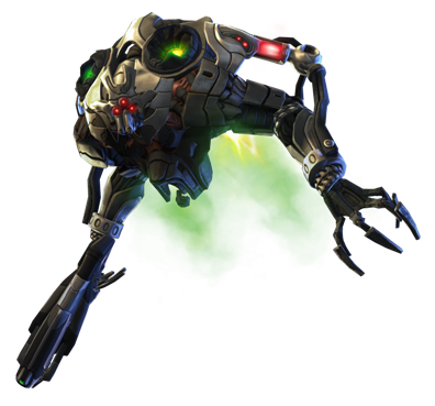 Drone (1,100 points): "Flight-capable but slow, this unit can be a cheap scout or a repair-bot for the expensive Cyberdisc. But its drone beam isn't going to do any kind of damage by itself, and its low HP means it's a very soft target."