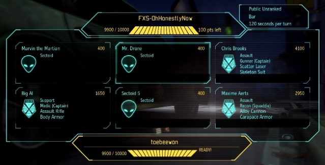 XCOM's multiplayer isn't just about picking the perfect units. It's about picking the right ones to work with each other in a harmonious, death-dealing squad. I asked Solomon to create the three perfect teams, one using all aliens, one with humans only, and one mixed.