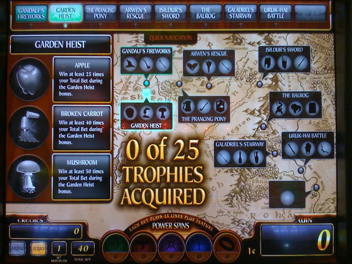 On a recent trip to Las Vegas to secure funding for Bitmob via "put it all on black!" -- er, I mean, to see my dad -- I discovered this fascinating new video slot machine themed after The Lord of the Rings. I don't know if I've seen anything more obviously targeted toward gamers outside of Master Chief Mountain Dew. This thing had it all: side quests, unlockables, power-ups, and most interestingly, a progression-based achievements system....