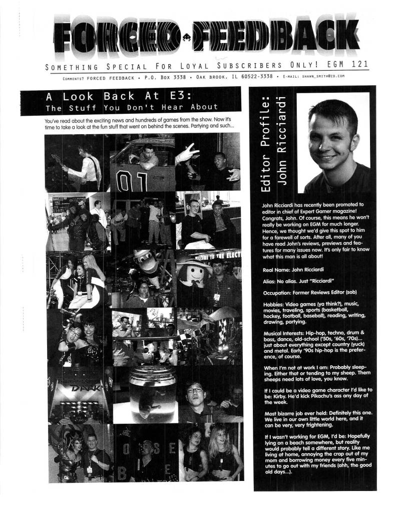 EGM is simply my favorite magazine. I moved around a lot as a kid, so it was hard for me to make any meaningful, lasting friends. In a way, the editors of EGM were my friends in spirit. I could always rely on their witty writing to make me laugh and keep me informed on the video game industry.
