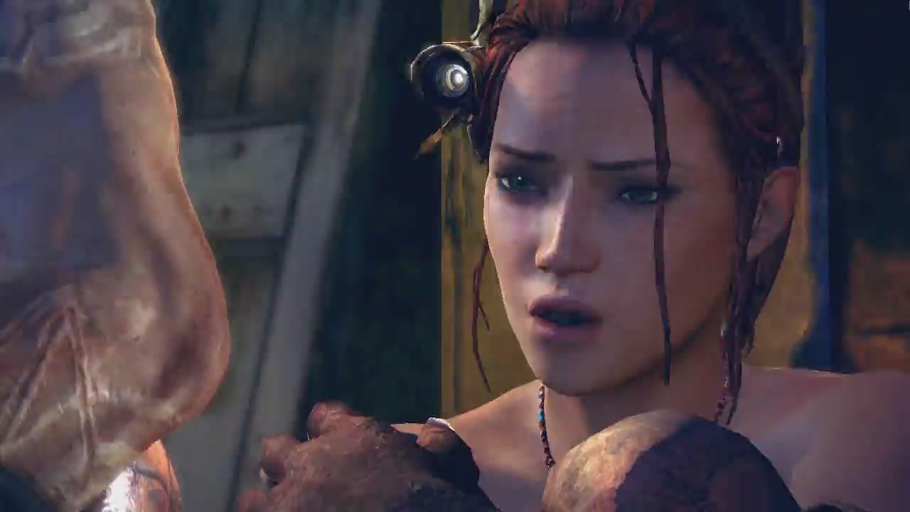 One of the more stunning elements of Enslaved is that most of the cutscenes are in-engine. This scene between Monkey and Trip is powerful. This gives credence to story telling in cutscenes and games as a interactive story telling device.