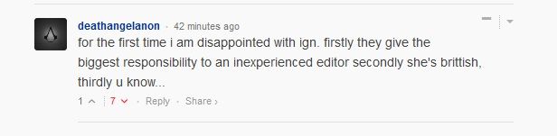 Just scroll through the IGN review comments section. The majority of commenters clearly came to the review with their mind made up already about the game and some, like those above, stooped to xenophobia and sexism due to their fanaticism over a freakin' video game. That's maddness.