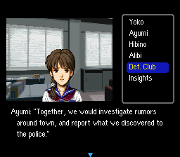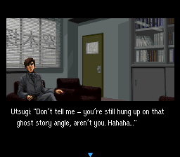 You question everyone from bartenders and students to teachers and policemen. The story is filled with twists and just when you think you have the story solved, you find new evidence. I got stumped a few times, but ultimately some parts are just about picking the right menu options. A version with voices would be pretty awesome, Snatcher-style. I have to admit it is hard to believe that Nintendo created this game, and it’s no wonder this game never appeared in the United States (besides the fact that most Americans fail to appreciate visual novel games). The eerie game soundtrack, color schemes, and anime scenes gave me the shivers at least a couple times through my playthrough.