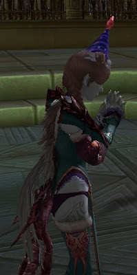 Then I set out to write this post about this strange no pants wearing festivity goer - when I began to wonder... just... what... those... things that appear to becoming out of her... rear. Tentacles?.... >.> I thought maybe it was a weapon that was hung funny off her belt... but... she isn't wearing a belt... so....