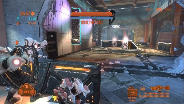 Essentially, Hybrid eschews traditional free-form movement for a dedicated reliance on cover. During a match, every combatant on the game's two forces -- Paladin and Variant -- crouches behind wall sections or large pieces of rubble that are seemingly attached to every surface, including the ceiling. To get from one place to another, players select a nearby defensible position using the control stick and press the movement button (or hit it twice to activate a speedy jet pack), resulting in their avatar dutifully sprinting automatically to the new destination.