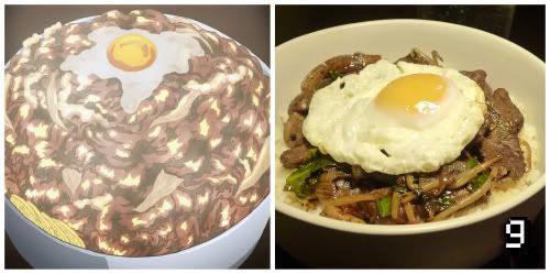 You can find the full recipe here. The challenge is actually an oversized bowl of gyudon, which is just beef and onion over rice. Gourmet Gaming added a few other ingredients to make this a slightly more colorful dish.