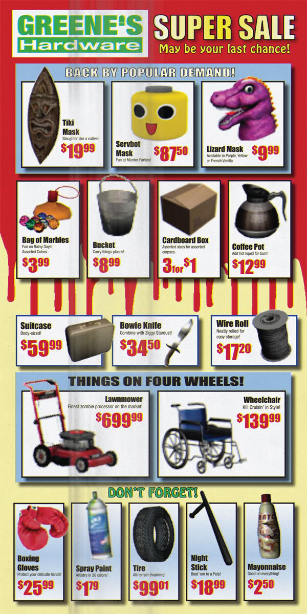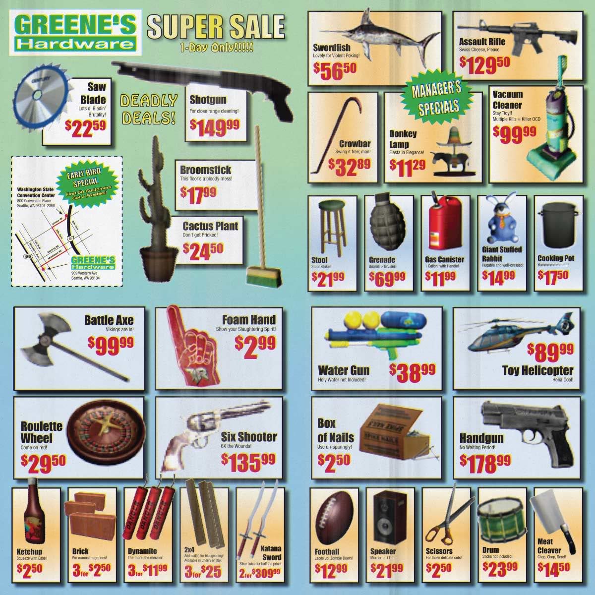 - What: Greene’s Hardware Super Sale (Dead Rising 2 community event)
