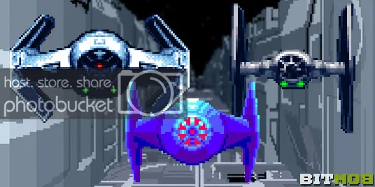 The original Space Harrier pitted the protagonist against indescribable enemies, but its sequel, Space Harrier 3D, had freaking TIE Fighters in it. Well, not really, but just look at that purple ship in the image above. It's like a cross between Darth Vader's TIE Advanced and a regular TIE. The farce is strong with this one....