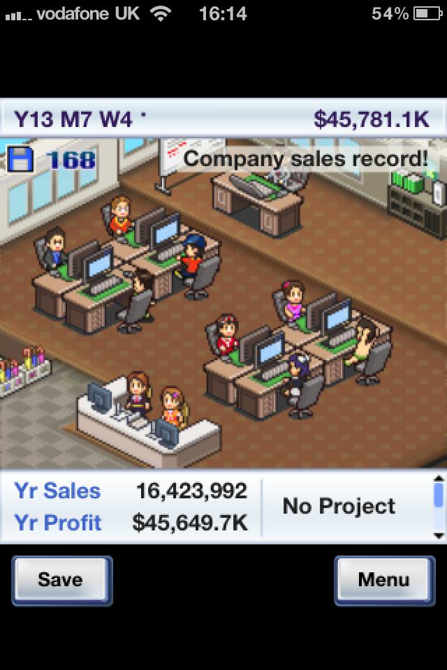 This isn't some bizarre fanfiction you're reading, this scenario occurred during my first playthrough of Game Dev Story on the iPhone. In the vein of Theme Hospital or Zoo Tycoon, Game Dev Story is a simulation game. As you may have guessed you take charge of a game development studio. As the head of the studio you are tasked with hiring and firing staff aswell as decided which type of game to make and on which system.