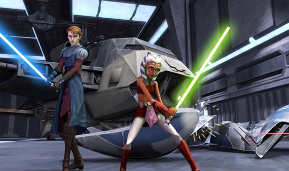 Clone Wars Adventures, which I have a 1 month subscription to, is an online game where you create a character which is framed as a padawan in the Jedi Temple during the Clone Wars. Your goal is to learn Jedi powers, mastering control over your emotions, and going on raids with other players to kill battle droids and get fat loot. I'm sorry, I think I was designing that game in my head as I was playing the puzzle game where you "align crystals" to build a lightsaber; and when I say build a Lightsaber, I do not mean build a Lightsaber.