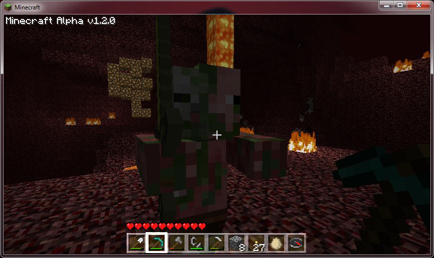 On easy mode, I heard the blood curdling wailing of moans and screeches nearby. I came face to face with The Nether's neutral mob of pig-like man zombies.