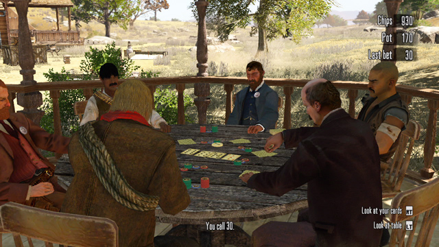 Card games have found their way into Red Dead Redemption, Star Wars: Knights of the Old Republic, Grand Theft Auto: San Andreas, and just about any other game big enough to fit them. But instead of adding some activity to character-driven sections, they usually isolate the scenes and block out the worlds surrounding them. Red Dead Redemption's outside tables were an ideal setting for Texas Hold 'Em, but the witty writing from the cut-scenes had gone.