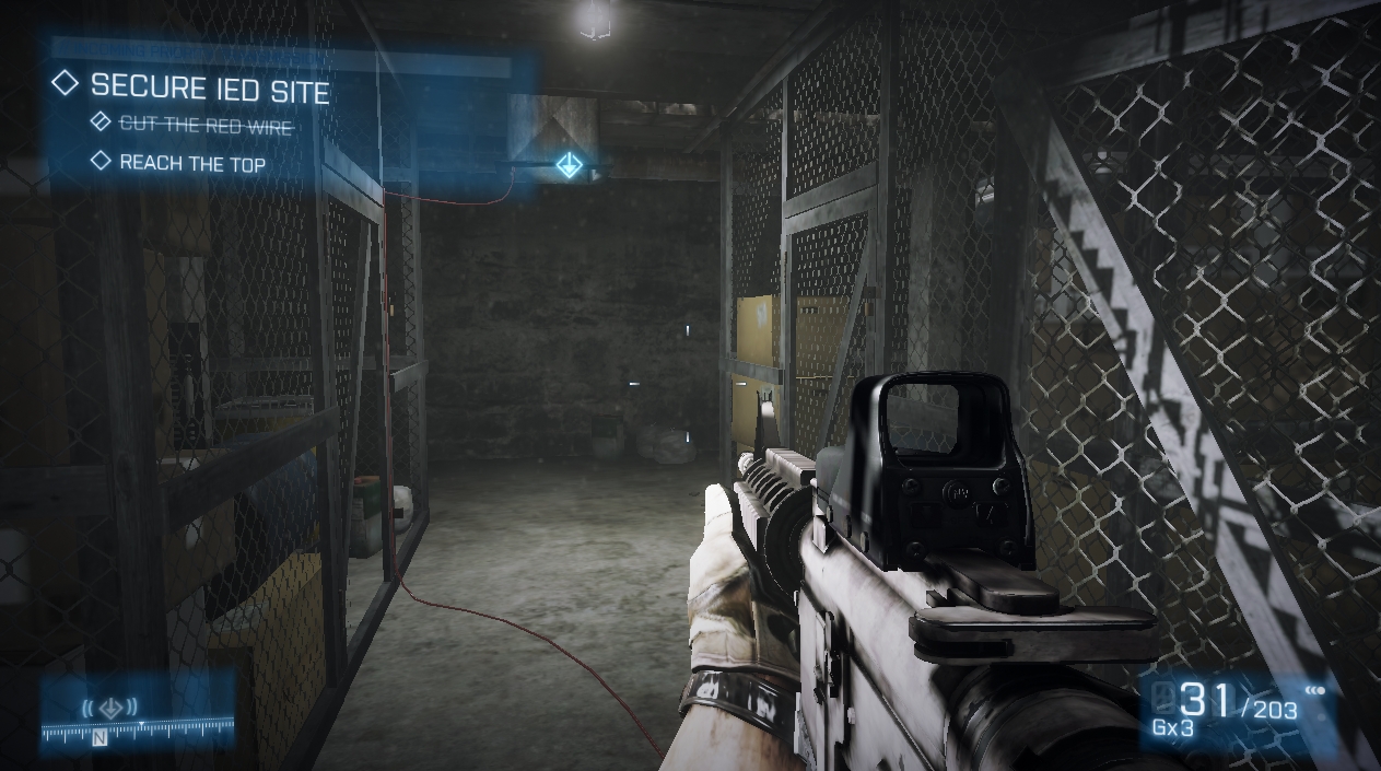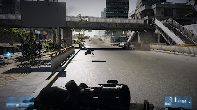 So, while the rest of the industry succumbed to CoD4’s disruptive waves, Battlefield set out to shore up its tracks. Both Bad Company and Bad Company 2 introduced a number of new gameplay mechanics that changed the way one could play a shooter: destructible cover, weapon-based progression running alongside soldier progression, and vehicles. It gave us a still greater landscape upon which we could both run and gun. Its intention and goal was not to simply design a more elaborate corridor in which to run in, but rather a more elaborate means of running through it. To that end they do substantial work in emphasizing the very thing that runs through them: the body.