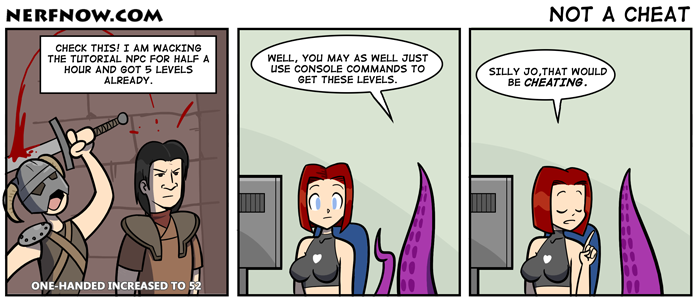 The thing is, the Cracked.com and EGM writer didn't even consult a guide or the Internet for some of his character-boosting techniques. He just took the cheap crap he learned from the last game in the series, Oblivion, then added some common sense and applied those strategies here.