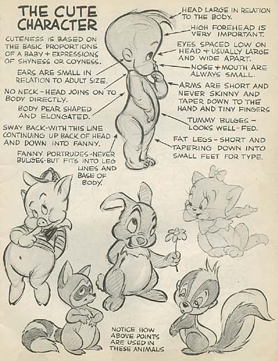 That is how Disney and MGM animator Preston Blair defined "the cute character" in 1947. In particular, note "head large in relation to the body," "no neck," and "fat legs." Also implicit in Blair's design is the idea that cute means soft, round, and clumsy. Now look at Mr. Bubbles: giant, round head; soft and squishy diving suit; and giant, awkward-looking boots.
