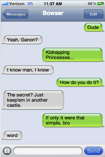 Luckily, the team over at Pixel Perfect happens to have an adept team of hackers at their disposal, and they have managed to hack into the cell phones of some of the best known video game characters from around the world–and what kind of friend would we be if we didn't share some of the best texts they found with all of you here at Bitmob…