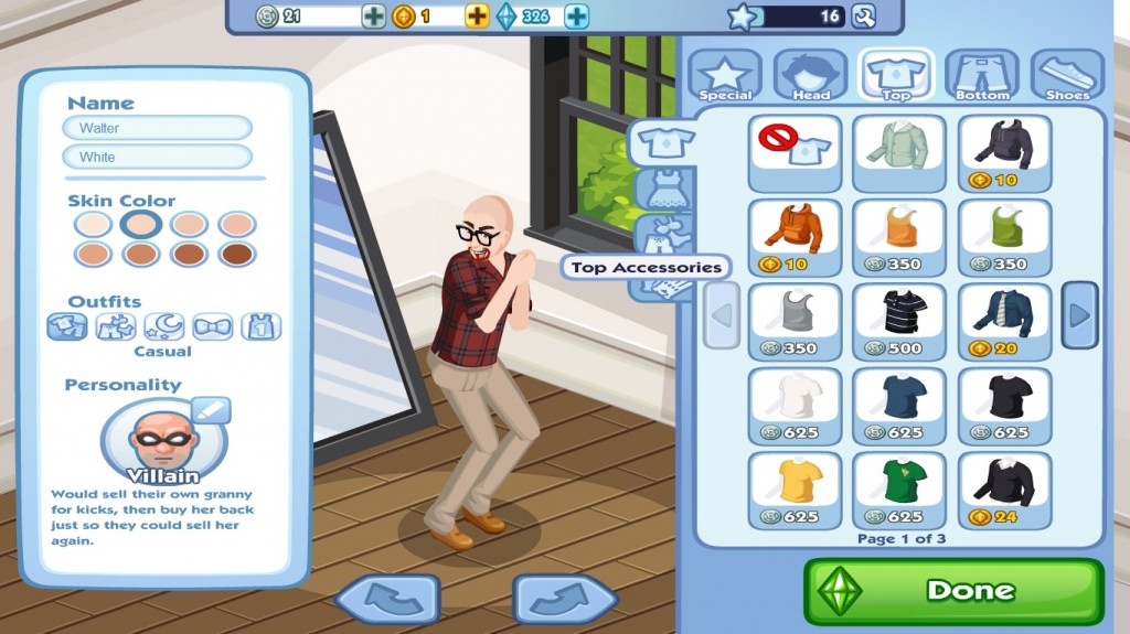 I’ve been playing The Sims Social for about two weeks now, and I’d be lying if I said that it hadn’t become a compulsion to see how Walter White is doing every time I turn on the computer. But it’s interesting to me how this is The Sims game I always thought I wanted, and yet the results are not nearly as satisfying as I had anticipated. Stress may have eventually driven me away from the franchise, but at least I had some memories to look back on. Without that stress, The Sims Social basically becomes an interactive furniture catalog.