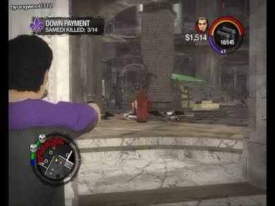 The player character's gang needs a new base of operations, so you are then tasked with cleaning out a dilapidated church which is home to a rival group and a portion of Stillwater's homeless. After dispatching the resident members of the Sons of Samedi, you are then asked to destroy the makeshift shanty town the homeless had set up inside the structure. You're even asked to throw these people at their homes to destroy them quickly. It gets worse. Finally, you need to kill the remaining hobos to claim this turf as your own.