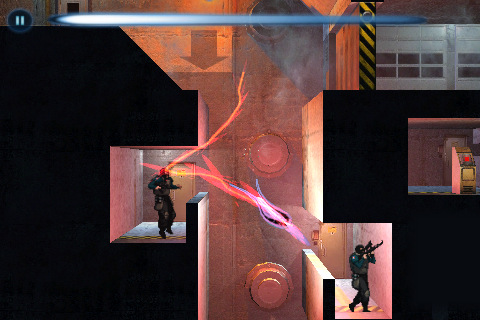 Perfect Cell casts you as a weird B-movie inspired amorphous floating blob with trailing tentacles. Predictably, the sole, brief introductory cutscene explains how you have been 'discovered' by scientists who are keeping you under observation in a high tech lab, and predictably the game tasks you with escaping to freedom. What this amounts to is some stealth based puzzling in a Shadow Complex style environment. So far, so familiar, but when things start to go a bit Half Life, and marines ostensibly trying to contain the situation start a bloody cover up before your eyes, an interesting morality factor creeps in. Do you sneak through levels without directly harming another soul, even if it means the death of 'innocent' scientists? Wipe out all in your path, innocent or otherwise? Or play an avenging angel, saving the boffins and offing the SWAT teams?