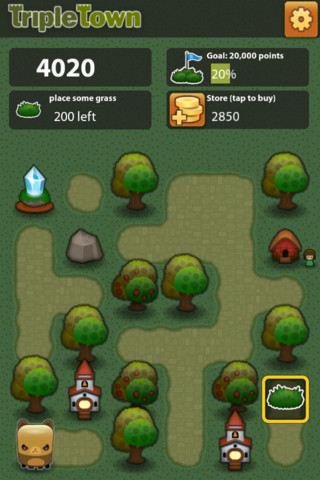 I didn't even notice my score being tallied up until after my second go at settlement building. Triple Town is more subtle than that; it doesn't aim to throw numbers in your face on the downbeats of an endless techno loop.