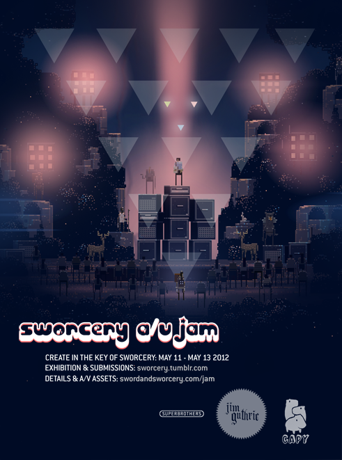 I think this is a fantastic way to celebrate the Sworcery game world and endear fans to the company. This jam also creates a nice forum for amateurs and pros alike to show off their talents, thanks in part to the affordable creative software of today (Photoshop, Garage Band, and the like). Even though everyone takes part in relative isolation, the idea that each artist is only supposed to be working during the same time period creates an interesting sense of online community.