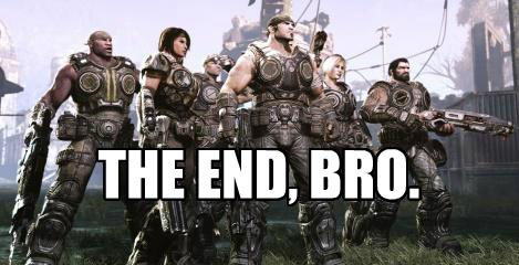 Gears of War 3 is the first real ending to a video-game trilogy that I've ever seen. So many series call themselves trilogies, but when the time comes to actually say goodbye, most refuse to do so. They start to pack up their things, but then they smile, nod at you, and whisper, "Wait, I can still suck more money out of you! Let's not wrap everything up, OK?" Gears 3 doesn't do this with its story or gameplay. This is the end of the trilogy. It feels like a conclusion, and that is the highest praise that I can bestow.
