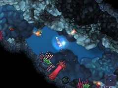 “Aquaria” is a surprisingly soothing game for me. I love the horns and woodwinds music, the pastel-colored backgrounds and sprites and just swimming around its beautiful, underwater ruins. Actually, I love it more than trying to solve the puzzles and fighting the bosses in this “Metroid” meets “Ecco the Dolphin” adventure. I’m always thrilled when I find a new section of Aquaria’s ocean to explore, but then I just get frustrated when I have to move some sort of gem around to open a new room in a temple. I’m much more taken in with the eerily beautiful world that developer Bit Blot has created than with the gameplay, which I’ve seen done before in “Super Metroid” and “Castlevania.”